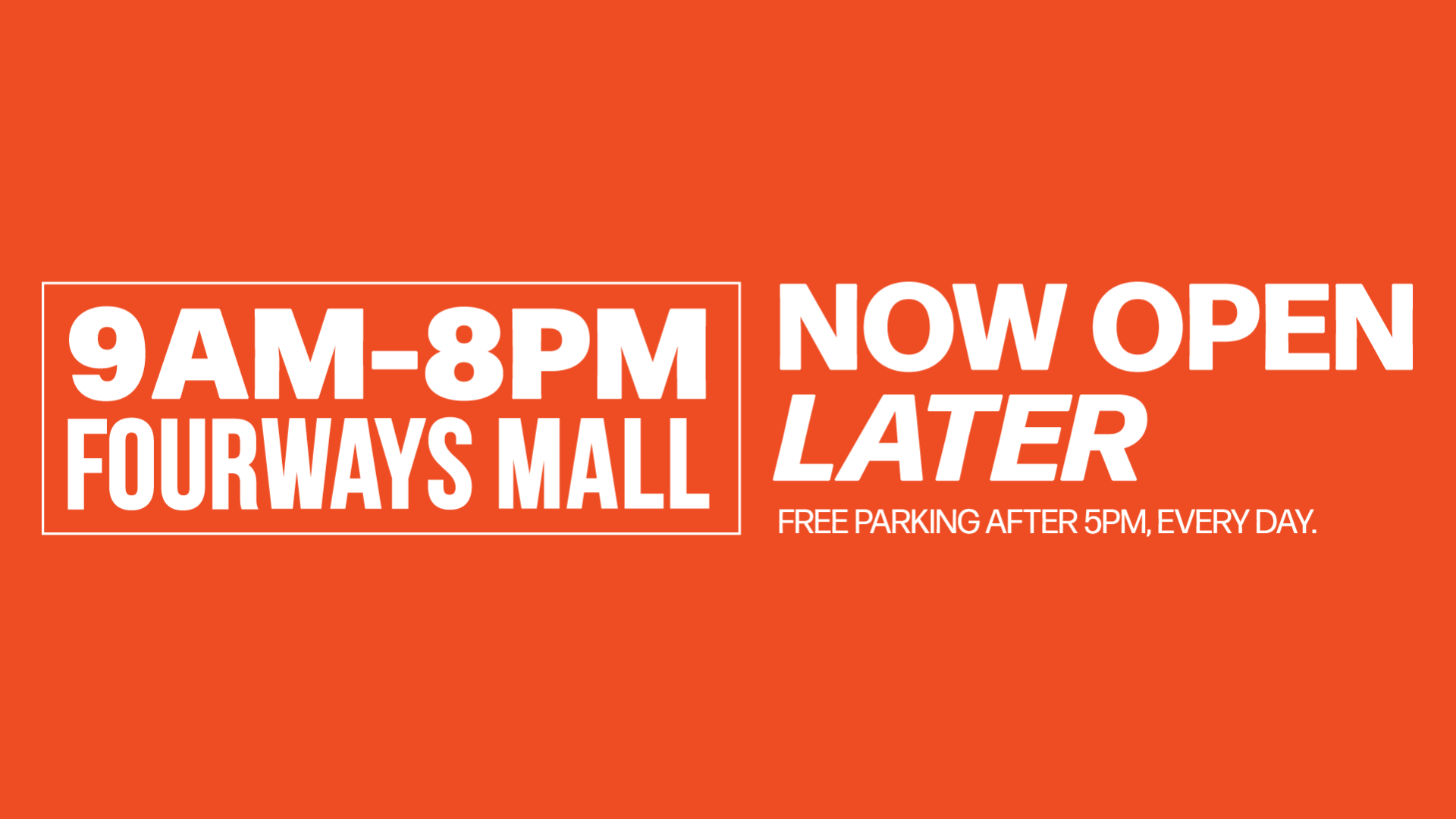 These are Fourways Mall’s minimum shopping hours, so many stores, including our food court, restaurants, cinemas and select department stores, may be open later.